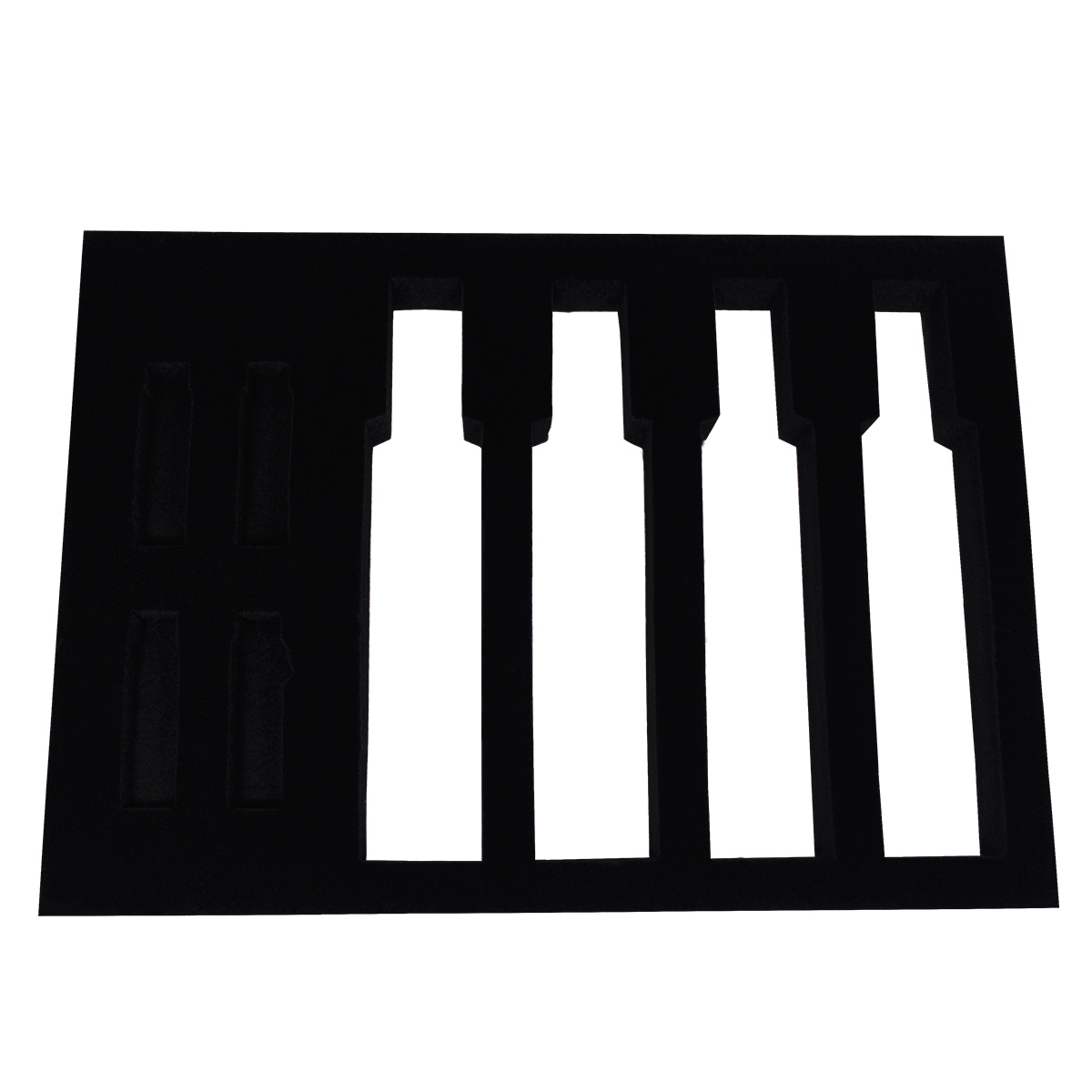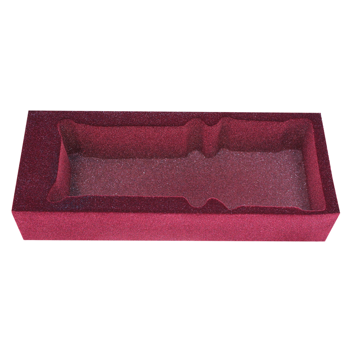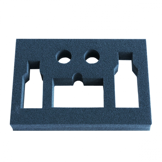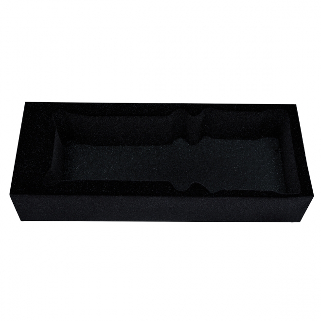 Gąbka i pianka z wyciętym lub wyfrezowanym kształtem na produkt umieszczony wewnątrz niej.